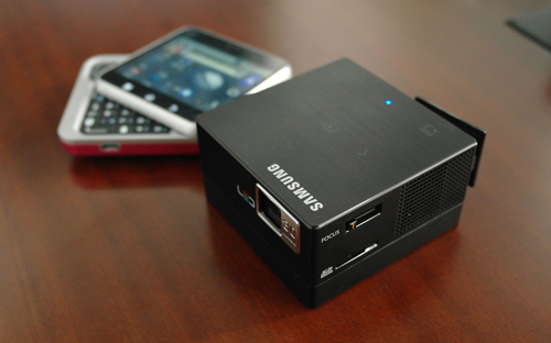 色彩銳利的影像,在接口設計上,三星H03提供了包括micro-SD擴展卡插槽、PC、AV輸入,音視頻復合線輸入、USB、 3.5MM耳機等在內的豐富接口。用戶在具體使用時,既可以把H03當做和家人好友用大屏幕分享網絡視頻、電影、電視劇的娛樂機,也可以用它來作為小型會議上的商務演示工具,真正是一機多能。此外,還值得稱道的是,H03支持無PC演示功能,其不僅機身自帶1G內存,而且U盤、micro-SD卡等存儲設備,它都可以直接讀取,使用當中,我們僅需將保存文件的U盤及micro-SD直接插到對應接口上,它便可智能地完成識別、讀取、投影一系列工作,非常簡單。H03可支持大部分主流格式的圖片、音視頻以及PPT、EXCEL、PDF等office文件,同時還支持文檔5倍放大,文件兼容性和功能上都非常強大。