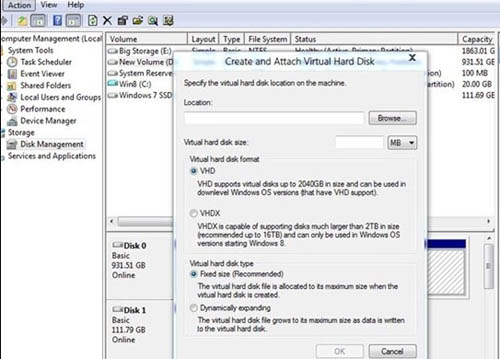 VHDX格式能支持16TB空間,它的加入為Windows 8注入了新的活力。整合了Hyper-V 3.0的Windows 8系統看來實用程度越來越高了。