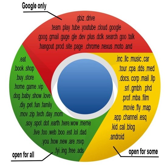 谷歌還可能會(huì)免費(fèi)開(kāi)放通用頂級(jí)域名。雖然它并不能直接從中獲利,但那樣做可以導(dǎo)致互聯(lián)網(wǎng)上的網(wǎng)站數(shù)量的增加,而那些網(wǎng)站有可能會(huì)接到谷歌的廣告和運(yùn)行谷歌的應(yīng)用程序,從而為它提供一個(gè)更大的市場(chǎng)。