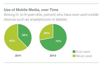 0-8歲兒童中使用移動設備的人數(shù)比例從2011年的38%升至2013年的72%