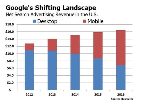 eMarketer表示,智能手機(jī)和平板電腦市場增長驚人,其正在重塑谷歌業(yè)務(wù)。eMarketer預(yù)計,相較于2013年的383億美元,2014年谷歌在全球市場所獲凈廣告收入將增長14%,至435億美元。