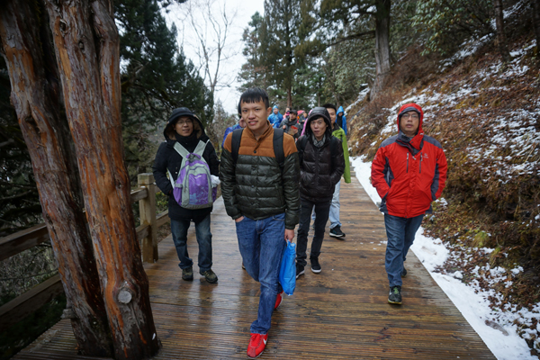 剛到五彩池,小冰粒一樣的雪就紛紛揚揚開始下了
