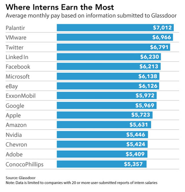 硅谷實習(xí)生月薪曝光:Facebook 6213美元,蘋果9223美元