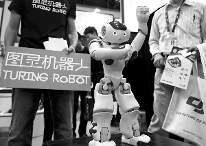 觀(guān)眾在觀(guān)看一款語(yǔ)音識(shí)別智能機(jī)器人。新華社發(fā)