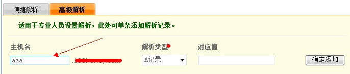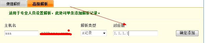 AAA就是他的2級域名 做下對應(yīng)值 解析 例如 1.1.1.1